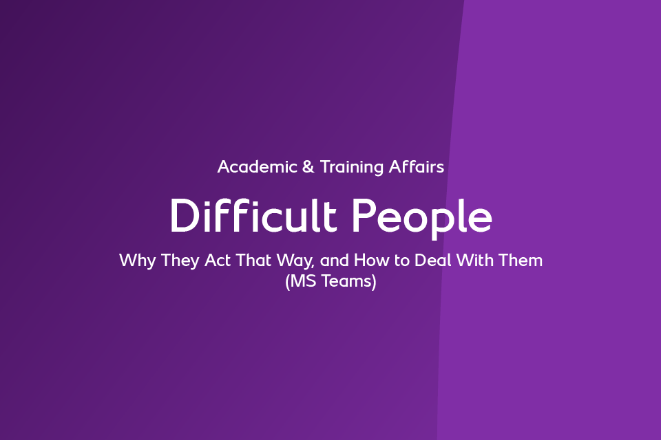The Academic and Training Affairs is pleased to announce the dates of the “Difficult People: why they act that way, and how to deal with them” courses in the 3rd quarter of 2024.