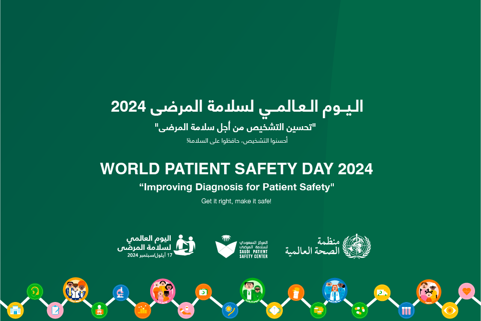 (WHO) and Saudi Patient Safety Center (SPSC) would like to invite you to celebrate with us the “World Patient Safety Day 2024”, under the theme of “Improving Diagnosis for Patient Safety”. Kindly find the event details below: