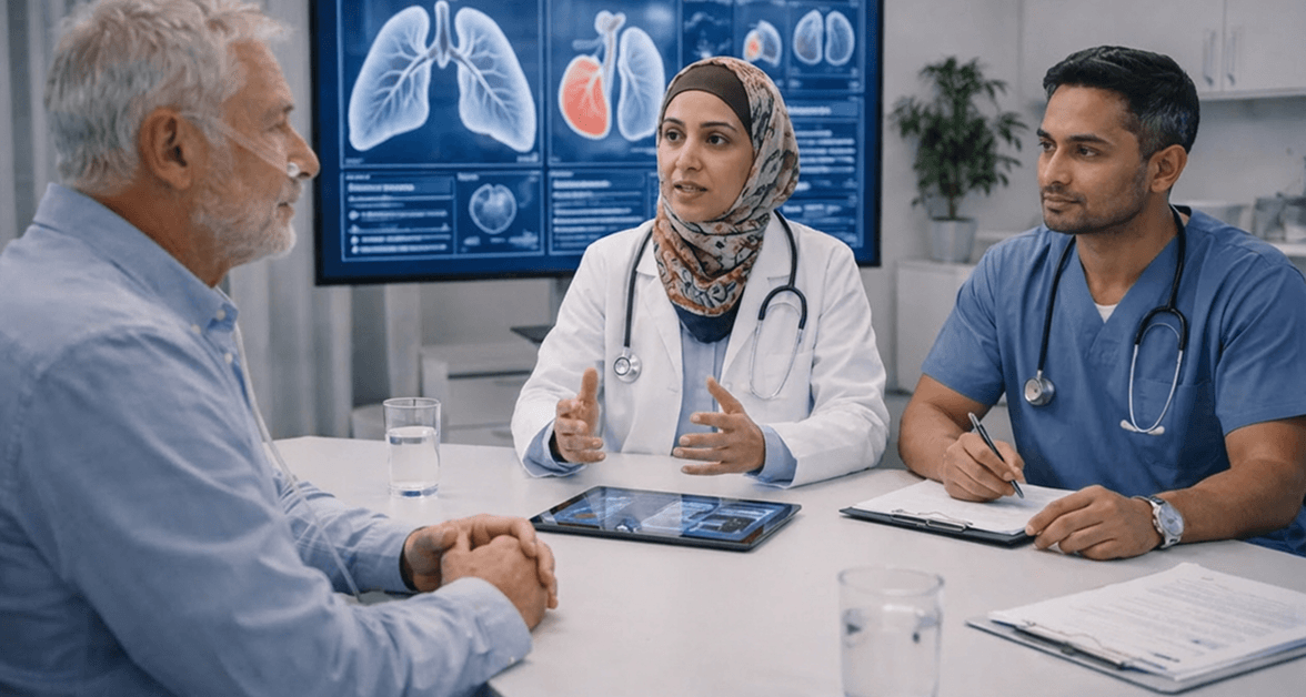 نعالج طيفًا واسعًا من أمراض الرئة، بما في ذلك التليّف الكيسي، والتليّف الرئوي، ومرض الانسداد الرئوي المزمن، وارتفاع ضغط الشريان الرئوي. كما نقدّم علاجات متقدّمة لسرطان الرئة وأمراض المريء والغشاء البلوري باستخدام تقنيات جراحية طفيفة التوغّل والجراحة الروبوتية. ويعمل فريقنا كوحدة متعدّدة التخصصات ترافق المريض منذ مرحلة التشخيص وحتى التعافي، مع إتاحة أحدث الخيارات العلاجية المتقدّمة، بما في ذلك زراعة الرئة.