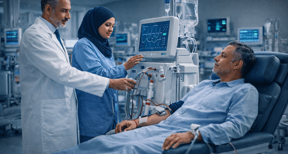 نقدّم خدمات شاملة للعلاج التعويضي الكلوي تشمل الغسيل الدموي المتقطع، والغسيل البريتوني، والغسيل الكلوي المستمر، وذلك من خلال فرق متعددة التخصصات توفّر دعمًا على مدار الساعة لمرضى الحالات الحرجة في وحدات العناية المركزة، بما يضمن الإدارة المثلى لتوازن السوائل والكهارل والعمليات الأيضية.