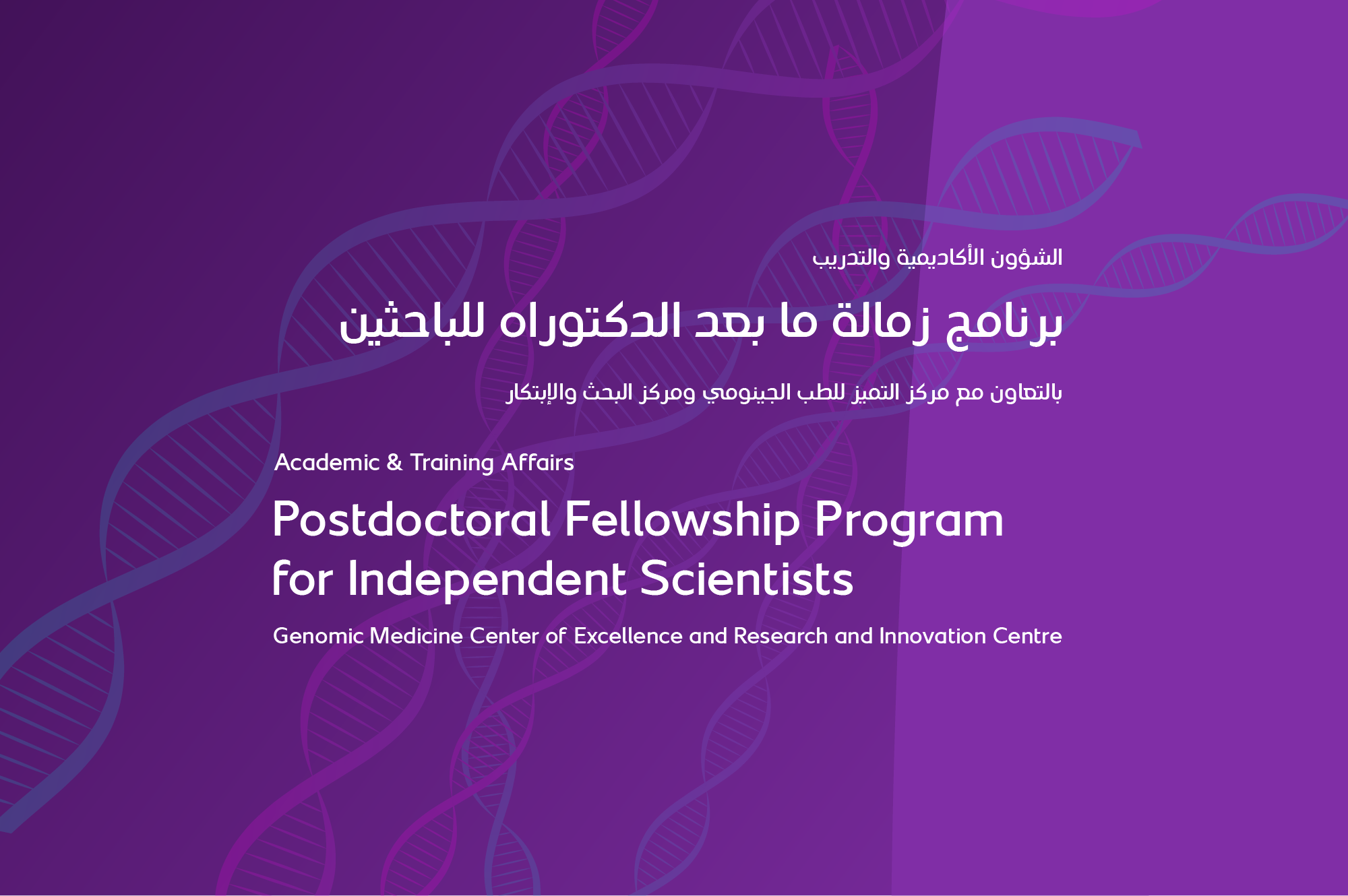 تم تصميم هذا البرنامج لحاملي الدكتوراه الجدد الذين يسعون إلى تقدم مهني سريع وشامل في حياتهم المهنية المستقبلية المتعلقة بالبحث العلمي.